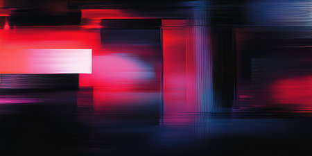 Vibrant glitch art with pink and blue abstract patterns, digital distortion effect. Cyberpunk and futuristic design concept
