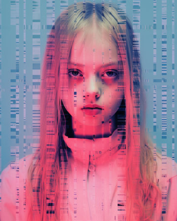 Futuristic portrait of a woman with glitch effect.