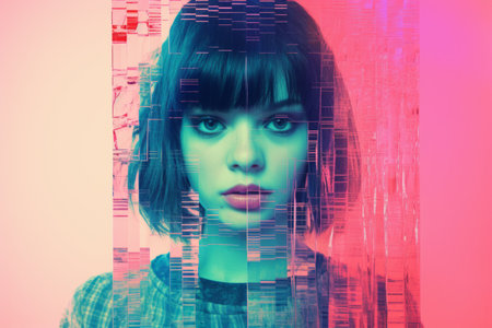 Portrait of attractive woman with glitch effect