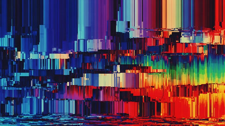 Digital glitch effect creates vibrant color shifts and distortion in modern art
