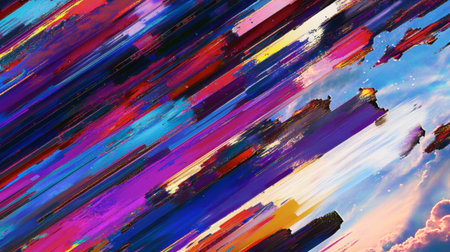 Glitch art showcasing fragmented digital pixelation in vivid colors and distorted imagery