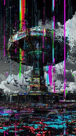 Glitch effect creating digital distortion with chaotic noise in a dark setting