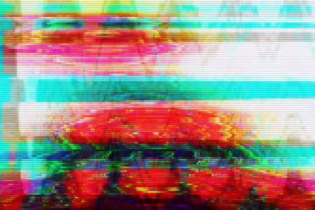 Digital glitch effect with vivid scan lines and distorted colors reminiscent of old TV screens