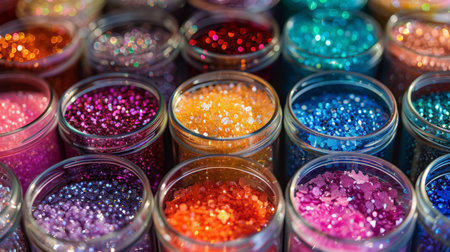A detailed close-up showing sparkling glitter with vivid colors and soft bokeh effects