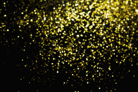 Abstract blurred glitter bokeh background in gold, on black
