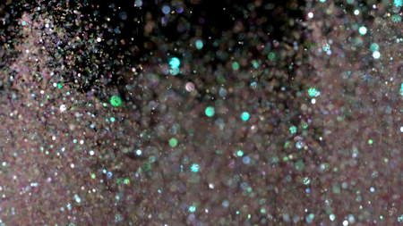 Multicolored shining glitter in focus and out of focus, abstract shiny background. Multicolored glitter magic background. black background, copy space