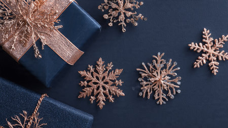 A serene festive setup blending dark blue and rose-gold hues in perfect visual balance.