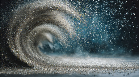 This stunning image captures a wave of sparkling particles, creating a mesmerizing effect against a dark background. Perfect for artistic and creative projects.