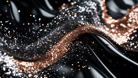Glitter particles create a shimmering effect against a soft black background