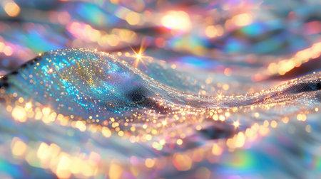 A mesmerizing close-up of soft waves in water, reflecting beautiful light and shimmering sparkles. This dreamy image captures a tranquil and serene atmosphere, perfect for backgrounds or artistic projects.