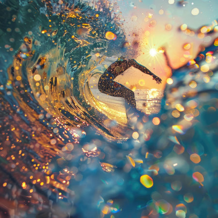 Captivating ocean wave with a mesmerizing pattern and glittering accents around it.