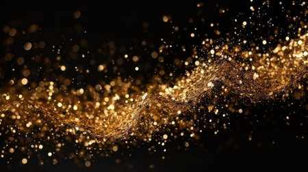 Abstract of Gold glitter particles magic bright sparks in wave motion. Generative Ai