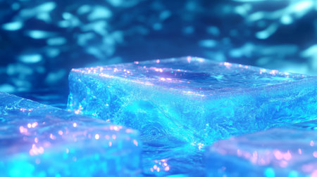 A stunning arrangement of illuminated ice cubes sits against a soft bokeh background, creating a magical and refreshing ambiance, perfect for food and drink themes.
