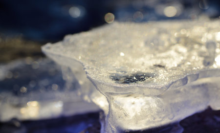 Ice on the frozen lake. Macro image, shallow depth of field. Winter nature background