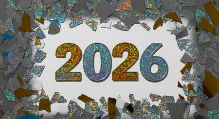 Shimmering Metallic Numbers Displaying the Year 2026, Perfect for Celebrations and Future Events