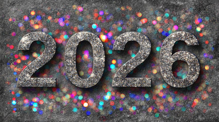 Celebration of the new year 2026 with colorful lights and sparkles reflecting festive spirit and hope for the future