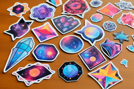 Vibrant Cosmic Sticker Set: Eye-catching Geometric Galaxy Patterns 3:2 Ratio