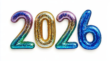 Brightly colored numbers symbolize the exciting arrival of the New Year with sparkling details adding a festive touch.