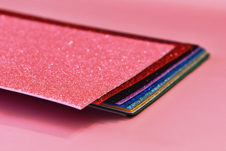 Colorful glitter on a pink background. Shallow depth of field.