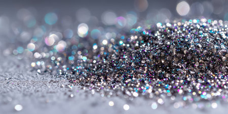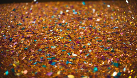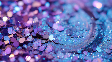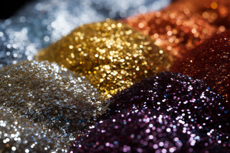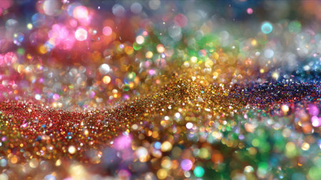 A detailed close-up showing sparkling glitter with vivid colors and soft bokeh effects