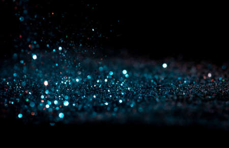 A mesmerizing close-up view of blue and black glitter showcases a playful bokeh effect, perfect for creative projects, festive events, and art designs.