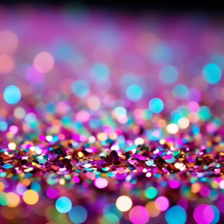 Abstract background with colorful glitter and bokeh lights, perfect for festive or celebratory designs.