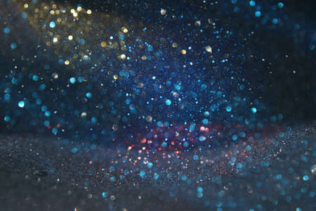 Abstract Blurred Blue and Gold Shiny Background for New Year Celebrations with Bokeh Texture