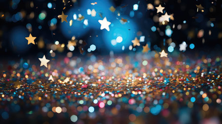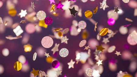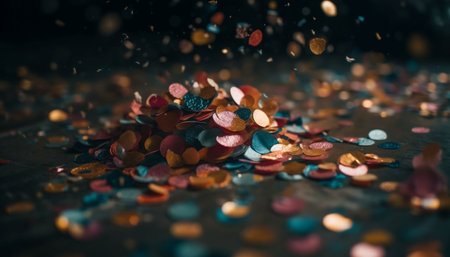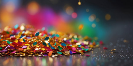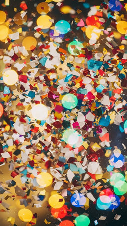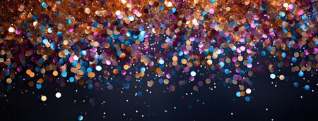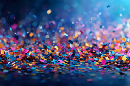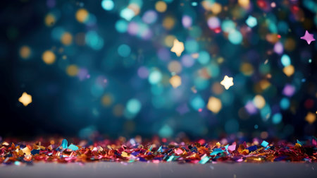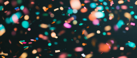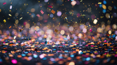 Colorful confetti and glitter sparkle against a dark backdrop for festive celebrations