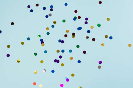 Multicolored confetti on blue backdrop. Great for holiday posters or joyful layouts, this cheerful scene inspires.