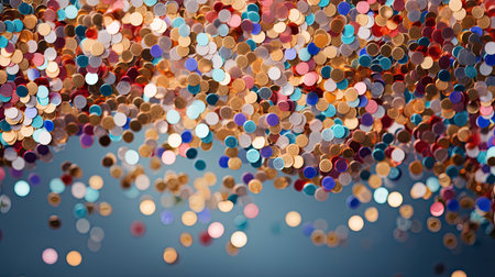Celebration and colorful confetti party. Blur abstract background, metal confetti with abstract shapes, blurry bokeh, metallic scrapes\ Ai generated