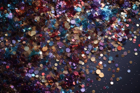 A dazzling arrangement of colorful glitter and shimmering sequins creates a vibrant and festive atmosphere, perfect for celebrations and artistic expressions.