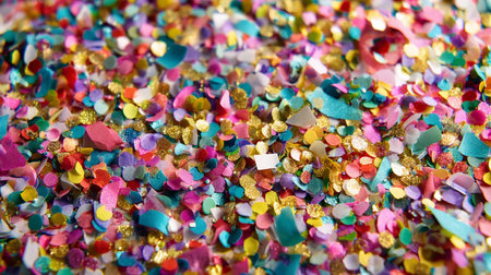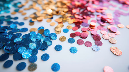 A close-up image of vibrantly colored confetti scattered on a light surface, perfect for capturing the essence of joy and celebration during special events.
