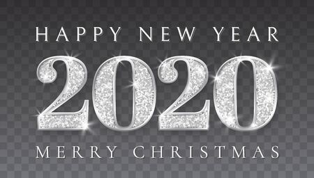 Happy New Year and Marry Christmas 2020, silver numbers design of greeting card, Xmas , Vector illustration.