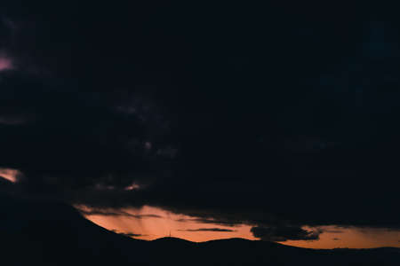 Sunset with the orange clouds under dark sky