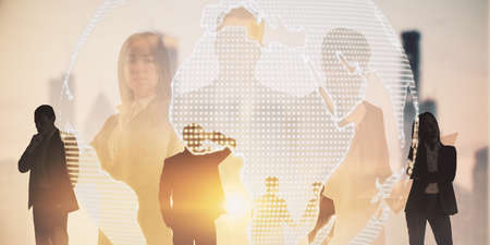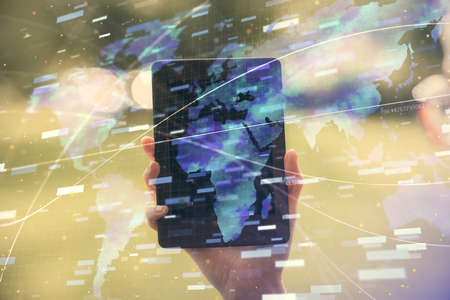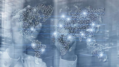 Global World Map Double Exposure Network. Telecommunication, International business Internet and technology concept.