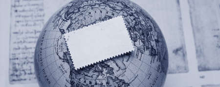 Blank card on the globe. Save the date. Vintage style.