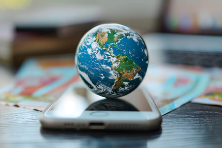 Earth hologram above smartphone screen