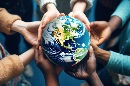 Image of people holding hands around the globe