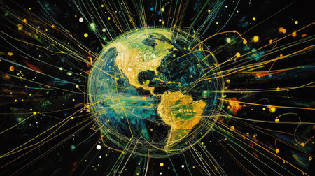 Abstract illustration of a D earth with network lines spreading across it, representing global digital communication.