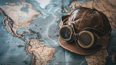 A vibrant travel scene featuring a world map, vintage camera, and stylish accessories, inspiring a sense of wanderlust and the thrill of discovering new destinations