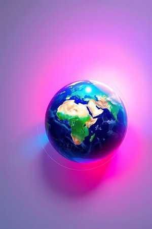 This vibrant composition features an artistic globe of Earth surrounded by colorful ribbons, reflecting creativity and motion against a dark background.