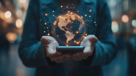 Earth hologram above smartphone screen