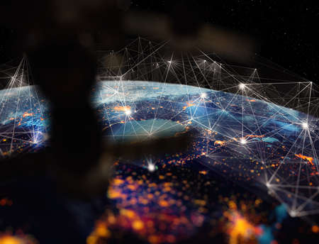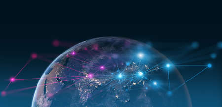 Communication technology for internet business. Global world network and telecommunication on earth cryptocurrency and blockchain and IoT. Elements of this image furnished by NASA
