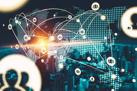 Global World Map Double Exposure Network. Telecommunication, International business Internet and technology concept.