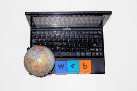 Global network. Globe on a laptop keyboard closeup. Online communication