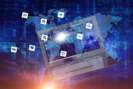 Mapping Global Internet Connectivity and Information Access through Laptop Screen. Concept Internet Usage, Global Connectivity, Information Access, Laptop Screens, Mapping Technology
