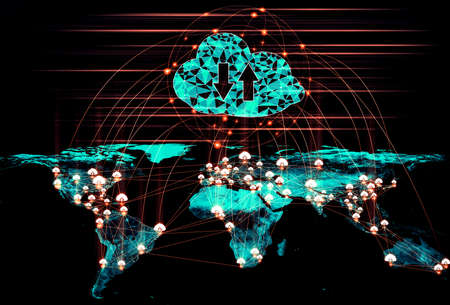 Cloud computing technology and online data storage in innovative perception . Cloud server data storage for global business network concept. Internet server service connection for cloud data transfer.