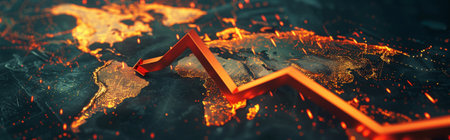 Financial chart with moving up arrow graph and world map background. Generative AI.