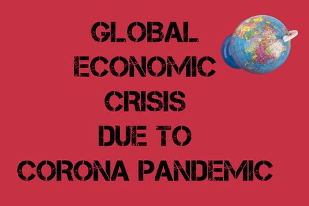 Concept with toy globus: Clobal economic crisis due to corona pandemic