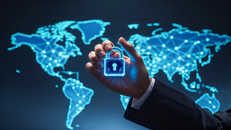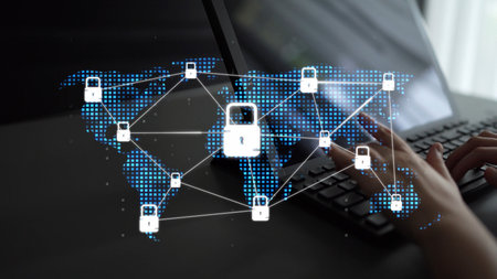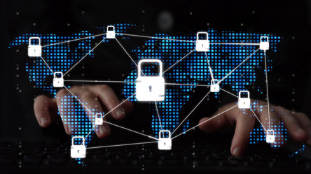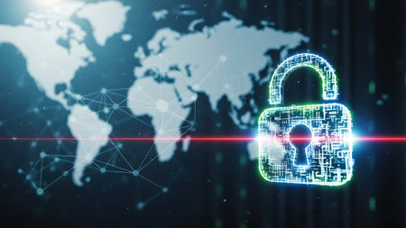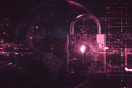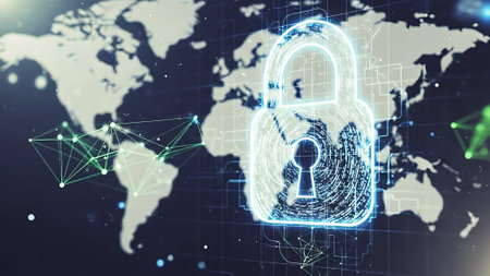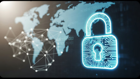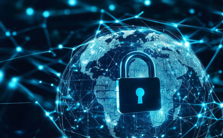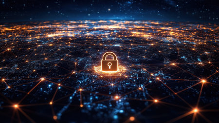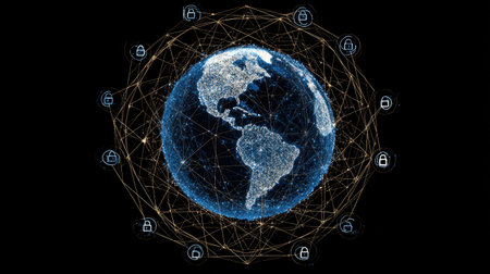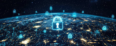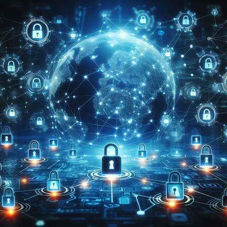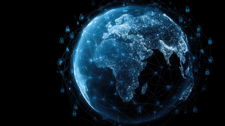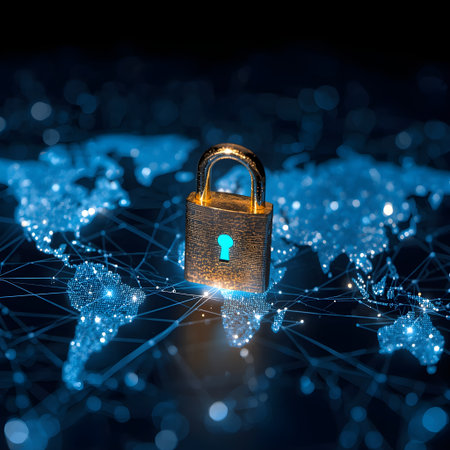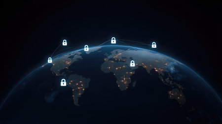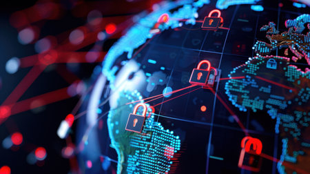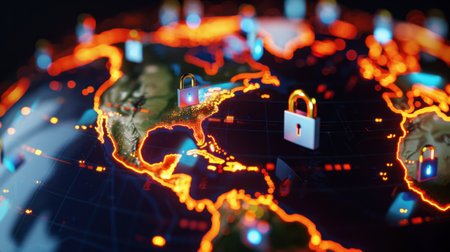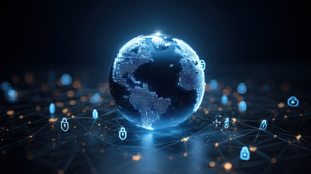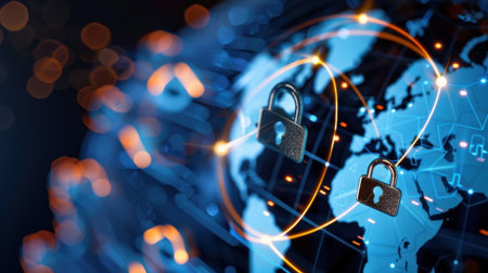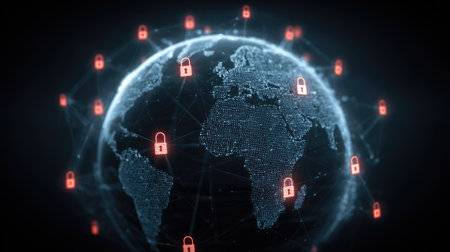Global digital security network with glowing lock symbols and connections